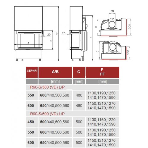 Каминная топка Kobok Corner 650 VD R90-S/500 L/P